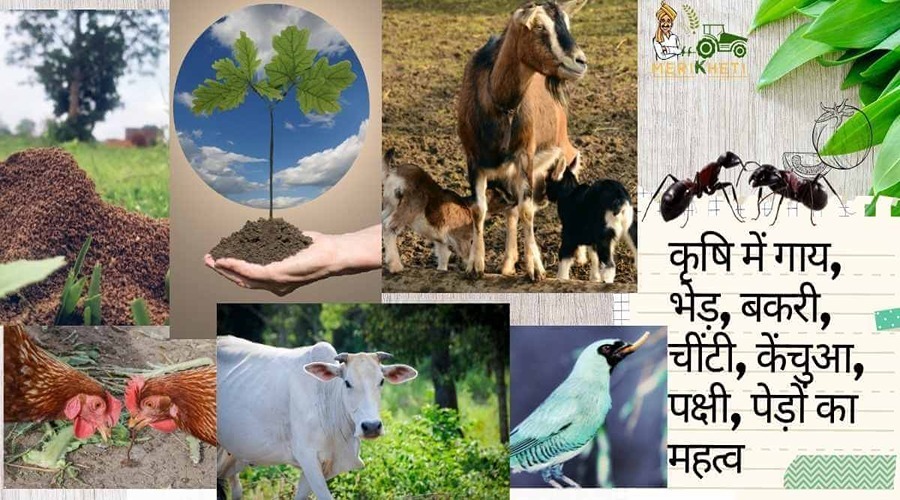 कृषि में गाय, भेड़, बकरी, चींटी, केंचुआ, पक्षी, पेड़ों का महत्व