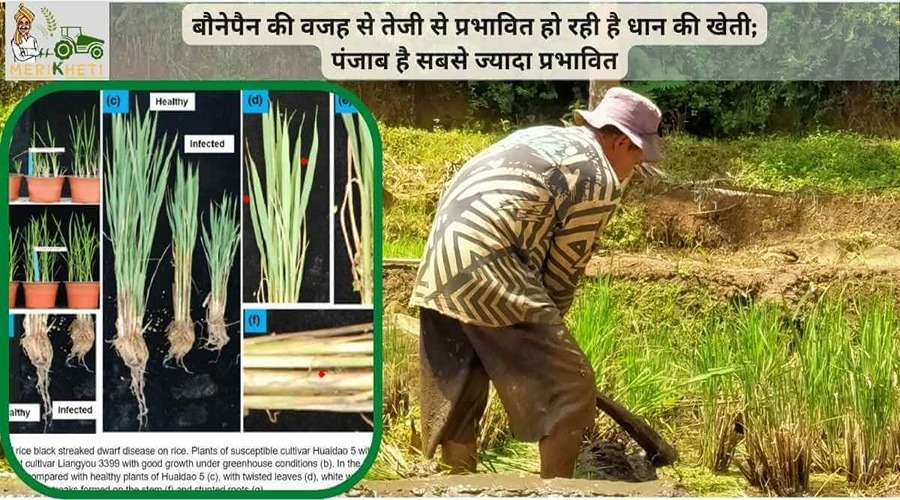 भारत में खेती का खरीफ सीजन चल रहा है। इस मौसम में उत्पादित की जाने वाली फसलों की बुवाई लगभग भारत भर में पूरी हो चुकी है। कई राज्यों में तो अब खरीफ की फसलें लहलहा रही हैं लेकिन इस बार धान की फसल में एक रोग ने किसानों की रातों की नींद खराब कर दी है। यह धान में लगने वाला बौना रोग (paddy dwarfing) है जो धान की फसल को बर्बाद कर रहा है। यह बीमारी वर्तमान समय में पंजाब में तेजी से फ़ैल रही है जिससे राज्य के किसान परेशान हो रहे हैं, क्योंकि इस रोग में धान के पौधे अविकसित रह जाते हैं व उनसे धान का उत्पादन नहीं हो पायेगा।इस रोग के कारण पंजाब राज्य के कई जिले प्रभावित हो चुके हैं। वहां के किसान इस रोग के कारण बेहद परेशान हैं क्योंकि उन्हें अपनी धान की खेती खराब होने का भय सता रहा है। इस रोग की समस्या मुख्यतः लुधियाना, पठानकोट, गुरदासपुर, होशियारपुर, रोपड़ और पटियाला में है। जहां सैकड़ों हेक्टेयर जमीन में लगी हुई धान की फसल चौपट हो रही है। बौनेपैन का रोग धान की फसलों को पूरी तरह से बर्बाद कर रहा है। इस रोग की वजह से अब तक लुधियाना जिले को सबसे ज्यादा नुकसान हुआ है। राज्य में बड़े पैमाने पर धान उगाया जा रहा है, लेकिन अब तक 3,500 हेक्टेयर से अधिक फसल में बौनेपैन का रोग लग चुका है। अगर धान के मूल्य का हिसाब किया जाए, तो सिर्फ लुधियाना में ही अब तक इस रोग के कारण किसानों को 51.35 करोड़ रुपये से अधिक का नुकसान हो चुका है। यह किसानों के लिए बड़ा झटका है क्योंकि आने वाले दिनों में यदि यह बीमारी नहीं रुकी, तो यह बीमारी और भी ज्यादा धान की फसल को अपने चपेट में ले सकती है। यह सब के चलते धान के उत्पादन में असर पड़ना तय है और इस कारण से किसानों को इस बार धान की खेती में नुकसान भी उठाना पड़ सकता है।
