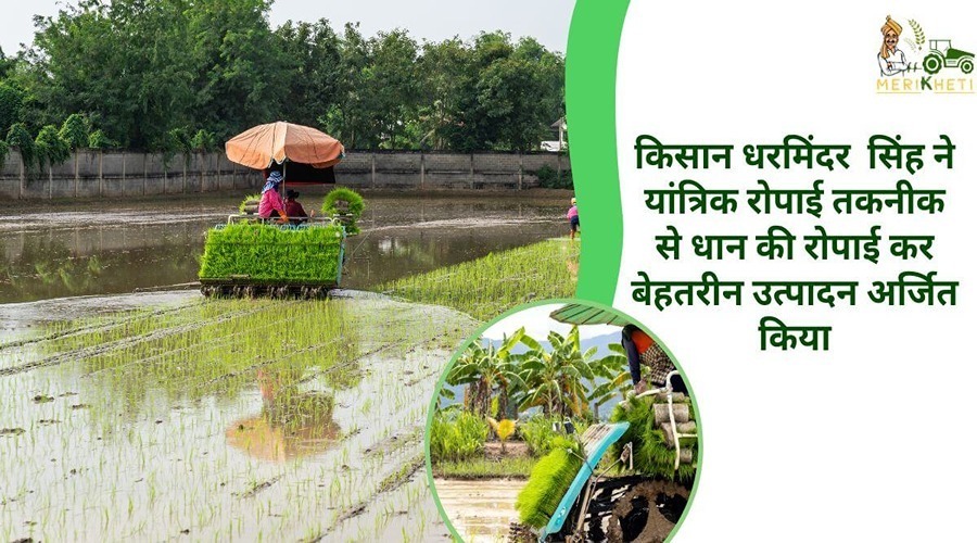 किसान धरमिंदर सिंह ने खेती की नवीन तकनीकों के जरिए दूरगामी सोच की बेहतरीन मिसाल कायम की है। इस नवीन यांत्रिक रोपाई तकनीक के जरिए से उन्होंने अपने उत्पादन को दोगुना कर लिया है। पंजाब के संगरूर जनपद के किसान धरमिंदर सिंह अपने 52 एकड़ खेत में गेहूं एवं धान की पारंपरिक खेती किया करते थे। वह पारंपरिक ढ़ंग से प्रवासी श्रमिकों के सहायता से कद्दू और पूसा 44 चावल के किस्म के धान की खेती किया करते थे। उन्होंने वर्ष 2019 में एक रोपाई करने की मशीनरी किराए पर ली एवं इससे उनकी खेती की पैदावार दोगुनी हो गई।किसान धरमिंदर ने कोरोना काल में दौरान खेती की तकनीक बदली