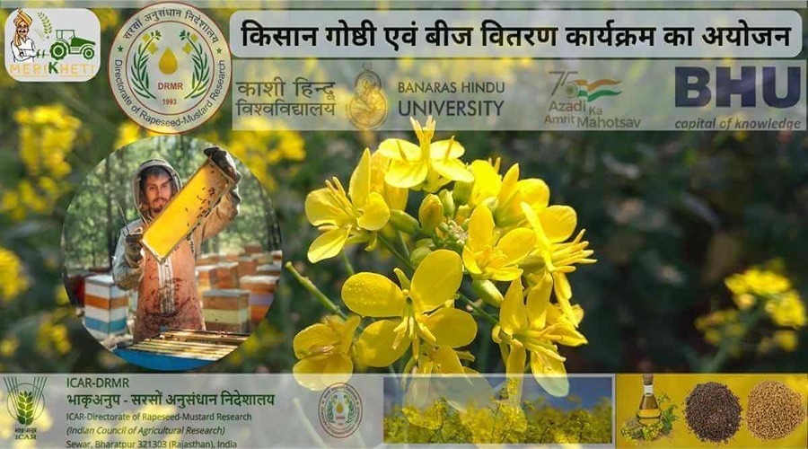 कृषि विज्ञान संस्थान, काशी हिन्दू विश्विद्यालय वाराणसी में अग्रिम पंक्ति प्रदर्शन परियोजना, राई एवं सरसों अनुसंधान संस्थान भरतपुर, के तहत किसान गोष्ठी एवं बीज वितरण कार्यक्रम का अयोजन किया गया, जिसमें विशिष्ट अतिथि राई एव सरसों निर्देशालय के निदेशक डॉं. पी के राय, कृषि विज्ञान संस्थान वाराणसी के वैज्ञानिक एवं परियोजना के संचालक डॉक्टर कार्तिकेय श्रीवास्तव, परियोजना के सस्य वैज्ञानिक डॉक्टर राजेश सिंह, पादप रोग विज्ञान के अध्यक्ष डॉक्टर श्याम सरन वैश्य, परियोजना सहायक डॉक्टर अदिती एलिजा तिर्की, अरविंद पटेल शोध छात्र दिव्य प्रकाश ,साहिल गौतम शामकुवर एव वाराणसी मीरजापुर के 100 प्रगतिशील किसान मौजूद रहे। इस कार्यक्रम में डॉक्टर पी के राय ने बताया कि किसान भाई, किसान समूह बना कर तेल निकालने वाली मशीन लगा कर अपने फसल का प्रसंकरण कर, खुद का उत्पाद बना कर बाजार में उसका विपरण करें, जिससे आय को दुगुना किया जा सकता है। इसी के साथ साथ उन्होंने बताया सरसों की फसल को सहफसली न करें, एकल फसल लगाएं। सरसों के साथ मधुमक्खी पालन करें, जिससे 10-15 प्रतिशत उत्पादन में बृद्धि होगी।ये भी पढ़ें: जानिए सरसों की कम समय में अधिक उत्पादन देने वाली प्रजातियां वहीं कृषि विज्ञान संस्थान के परियोजना संचालक डॉक्टर कार्तिकेय श्रीवास्तव ने कहा, सिंचित और असिंचित दशा में समय और देर से बुवाई करने वाली उन्नतिशील प्रजातियों एवं सरसों पंक्ति विधि से बुवाई कर के किसान भाई अधिक उत्पादन कर सकते हैं। इन्होंने समय से बुवाई के लिए गिरिराज (Mustard Giriraj Variety), वरुणा (Varuna), आर. एच् 725 (RH 725), RH-749 । बिलम्ब से बुवाई के लिए बृजराज, एन आर सी एच बी 101 प्रजाति की संतुति की। पादप रोग विज्ञान विभाग के अध्यक्ष डॉक्टर श्याम सरन वैश्य ने राई एवं सरसो में लगने वाले विभिन्न रोग के लक्षण एवं उसके निदान के बारे में बताया और कृषि विज्ञान संस्थान के सस्य वैज्ञानिक डॉक्टर राजेश सिंह ने सरसों की सस्य क्रियाकलाप सिंचाई एवं कितना रासायनिक और जैव उर्वरक का प्रयोग करें इस पर बल दिया। उपस्थित कुछ प्रगतिशील किसान ने अपनी समस्याओं को बताया और उसका समाधान वहां उपस्थित वैज्ञानिकों ने किया । इस कार्क्रम के उपरांत 100 किसानों को गिरिराज एवं बृजराज प्रजाति का बीज वितरित किया गया।