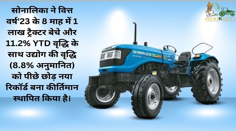 सोनालिका ने वित्त वर्ष'23 के 8 माह में 1 लाख ट्रैक्टर बेचे और 11.2% YTD वृद्धि के साथ उद्योग की वृद्धि (8.8% अनुमानित) को पीछे छोड़ नया रिकॉर्ड बना कीर्तिमान स्थापित किया है।